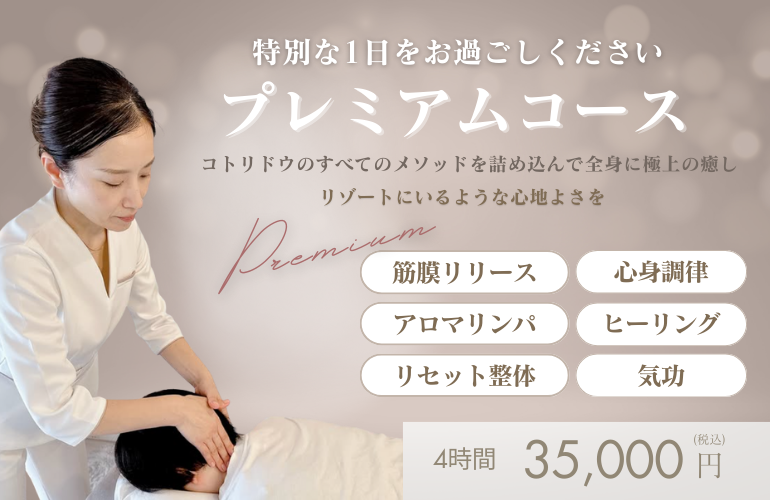 整体 × リンパケア × 筋膜リリース × 気功 × アロマを組み合わせた五感に響くオーダーメイド施術で、呼吸と眠りを深め心と体を芯から整えます。
