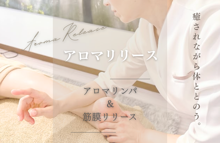 アロマリンパマッサージと筋膜リリースを組み合わせたオイルを使った施術です。お客様のご希望によって生まれた、当店1番人気のメニューになっています。